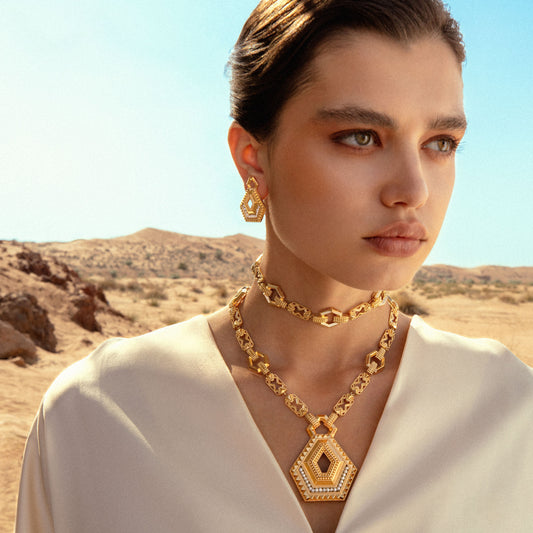 Introducing Ramth, defined by bold hexagonal silhouettes. Inspired by the timeless Arabian geometry and architecture.